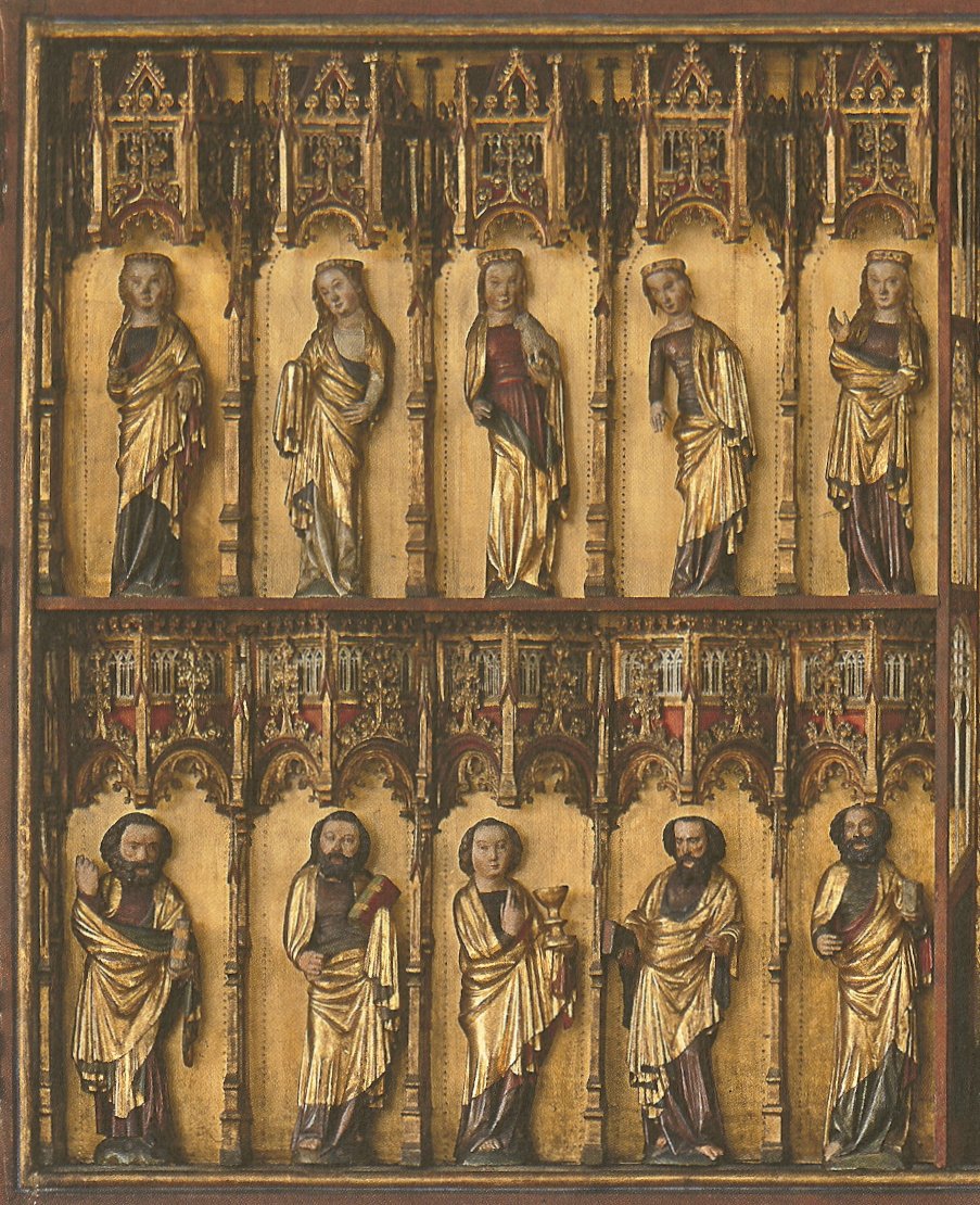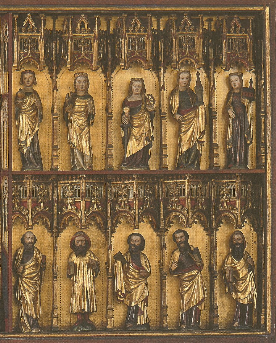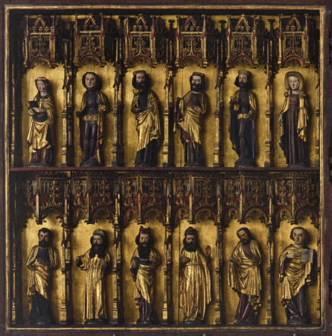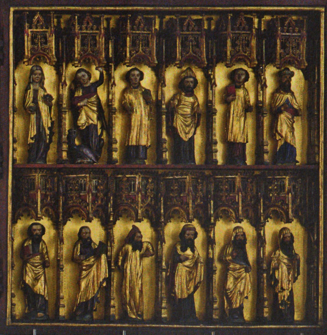Het hoofddeel van het altaarstuk bestaat uit een schrijn (kast) met een middendeel, twee zijluiken en een predella (de sokkel). In het schrijn staan in totaal 58 beschilderde beelden en 1 crucifix, die allemaal verwijderbaar zijn. De beelden tonen apostelen, heiligen en profeten.